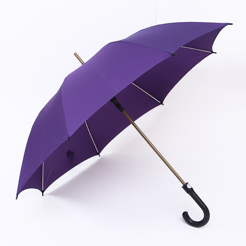 The Straight umbrella with fiberglass ribs RU1975 adopts a classic straight-rib design. When the umbrella is unfolded, it presents an elegant arc shape. The diameter reaches 140 cm, and the height is 95 cm, which can provide users with a sufficient coverage area. The umbrella surface is made of high-quality silk fabric, which is soft and comfortable to touch. At the same time, it has good waterproof performance and can effectively prevent rain penetration. The handle is made of black plastic, which is comfortable to hold and has anti-slip performance. It can be easily grasped even in a slippery environment.